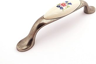 Sotech So-Tech® Poignée de Meuble Porcelaine Venus Bouquet de fleures Argent Antique
