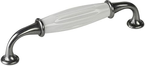 SO-TECH® Poignée de Meuble'Meta' Porcelaine Blanche Finition en Argent Oxydé Trous Entraxe 128 mm