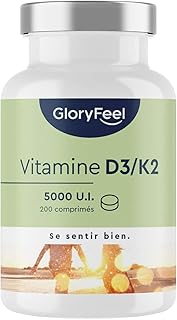 Vitamine D3 + K2 Depot - 200 comprimés (7 Mois) - 5.000 UI de Vitamine D3 et 200 µg de vitamine K par comprimé - Complément Alimentaire pour le Système Immunitaire, Os et Articulations
