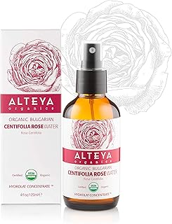 Alteya Organic Eau Florale de Rose Centifolia, Bouteille de verre ambrée avec spray de 120ml - Pure et authentique eau florale naturelle de Rosa Centifolia 100% Certifié Produit Biologique par l'USDA