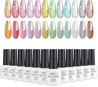 AIMEILI Paillettes Ongles Semi Permanent 12 Couleurs 8 ml Sparkle Glitter Gel Vernis à Ongles UV LED Soak Off Nail Art Manucure Kit 7