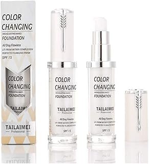 tailaimei Fond de teint liquide changeant de couleur, Crème couvrante anti-cernes, Maquillage de teint teinté couleur foncée sans défaut Fond de teint fond de teint liquide Base hydratante 40ML
