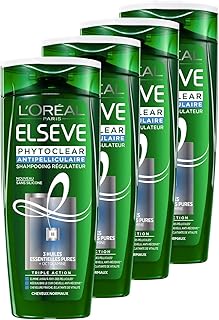 L'Oréal Paris Elsève Phytoclear Shampooing Régulateur Anti-Pelliculaire pour Cheveux Normaux 250 ml - Lot de 4