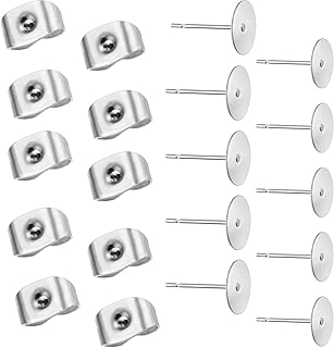 200pcs (100 Paires) Boucles d'oreilles Clous en Acier Inoxydable Boucle d'oreille Flat Pad (2 Tailles) avec 200 Pièces Dos de Boucle d'oreille pour la Fabrication des Boucles d'oreilles
