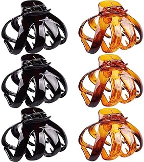 Vintage Mignon Cheveux Accessoires 6pcs pinces à cheveux, Filles et filles pinces à cheveux en plastique de grandes pinces à cheveux pinces à cheveux Octopus Barrettes for cheveux épais (noir, brun) B