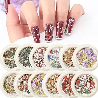 Kalolary 12PCS Paillettes D'art D'ongle de Noël, 3D Nail Art Autocollant Paillettes à Paillettes pour Ongles Flocon de Neige Confettis Brillants Accessoires de Décoration Nail Art de Noël