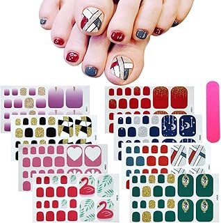 8 feuilles Autocollant Ongle Toenail Nail Art Sticker, Mwoot Ongles Art polonais Stickers Conseils avec 1 Pcs lime à ongles paillettes ongles Wraps autocollant bandes Kits de manucure