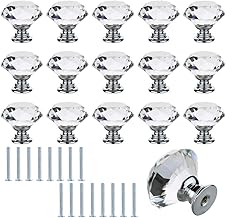 Bouton de Meuble Cristal, 20 Pcs 30mm Poignées Boutons Transparent Diamant Cristal, Bouton de Porte Meuble Tiroir Placard avec Vis pour Accueil Bureau Coffre Armoire Tiroir