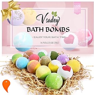 Vsadey Bombes de Bain 14PCS, Coffret-Cadeau de Boule de Bain aux Huiles Essentielles Naturelles, Beurre de Karité, Sel de Mer, Bombes de Bain Comme Spa Luxueux pour Bain pour Femmes/Maman/Petite Amie